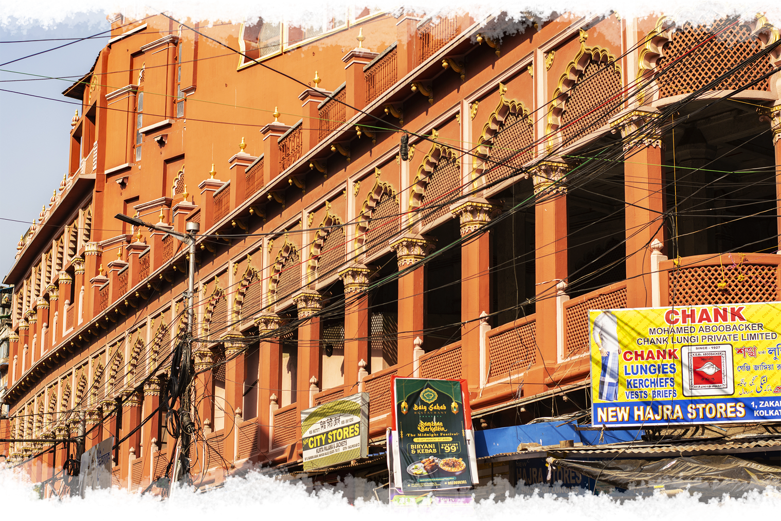 It is lined with numerous shops, market stalls, and iconic buildings that showcase the rich cultural heritage of Kolkata. The street is known for its vibrant atmosphere and is always bustling with people, honking vehicles, and street vendors selling a variety of items. It is also home to many historical landmarks such as the famous Kali Temple, Nakhoda Mosque, and the iconic Marble Palace.