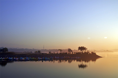 Sukhna Lake is a man-made reservoir located at the foothills of the Shivalik Range in Chandigarh, India. The lake, spread over an area of 3 square kilometers, was created in 1958 by damming the Sukhna Choe (a seasonal stream). It is a popular tourist destination and a beloved spot for locals as well. The picturesque lake is surrounded by lush greenery, making it a perfect place for a peaceful stroll or a serene picnic. Boating facilities are available, allowing visitors to take in the stunning views of the lake while gliding through its calm waters.